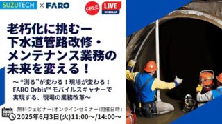 未分類 【SUZUTECK×FARO下水道管路の3D化】ウェビナーへ参加頂き、ありがとうございました! 大変多くの関係者様にご参加いただきありがとうございました。今後とも弊社が進める下水道の3Dソリューションについて引き続き情報発信してまいりますので、どうぞ宜しくお願いします。老朽化に挑む-下水道管路改修・メンテナンス業務の未来を変える!FA... 2025.06.04 未分類